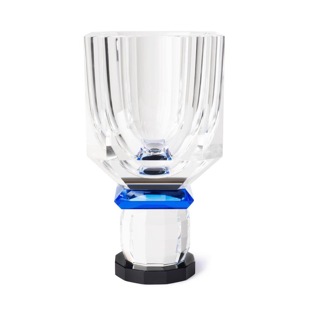 Crystal with a modern take! The reflective qualities of crystal enhance the ambience of a room. When light hits this vase, it creates a sparkling effect that adds depth and warmth to the space, creating a focal point in any setting.