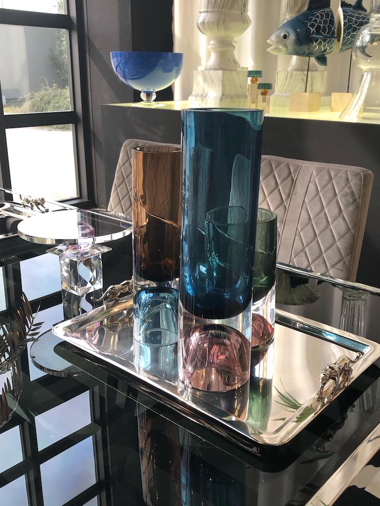 A captivating glass vase featuring vibrant color combinations along with its smooth curves and rich hues making it a standout decor piece, elevating any room or tabletop setting.