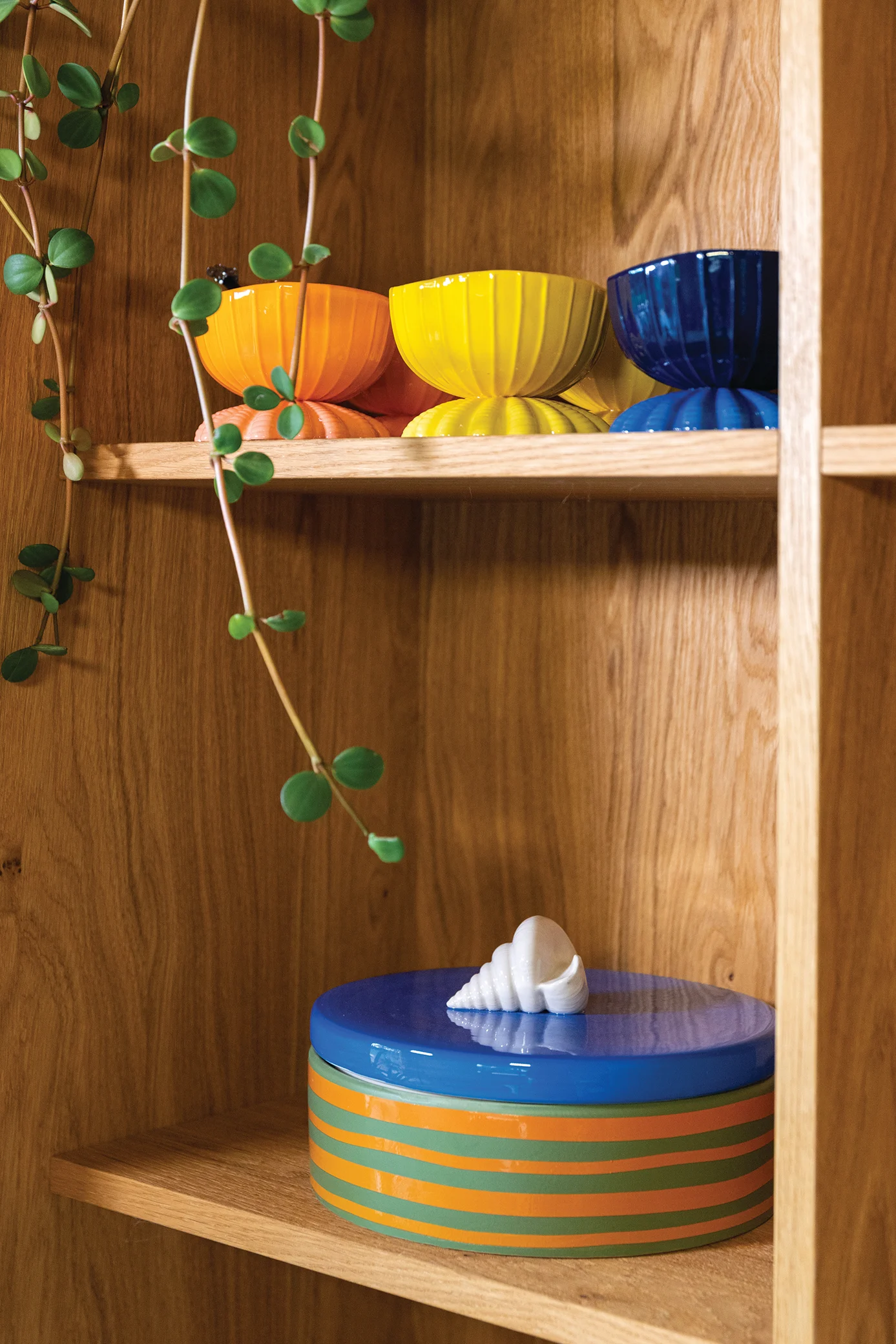 The cheerful coloured material and subtle shell-like shape create an elegant and summery design. This bowl is ideal for serving ice cream, storing small items or simply as decoration.
