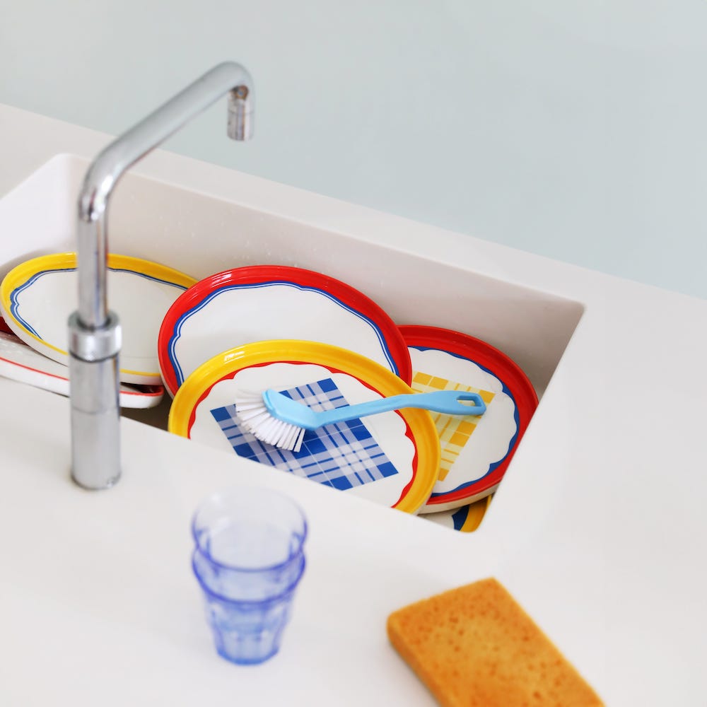 The Plate daydream, designed by Nynke Tynagel for our sub-label Buro Berger, was inspired by nostalgic plates and paper napkins that Nynke envisioned while daydreaming. These contemporary plates use graphic shapes and silhouettes to create visual illusions that captivate the eye. This colourful set of dinner plates blends old-fashioned charm with modern design through optical illusion.