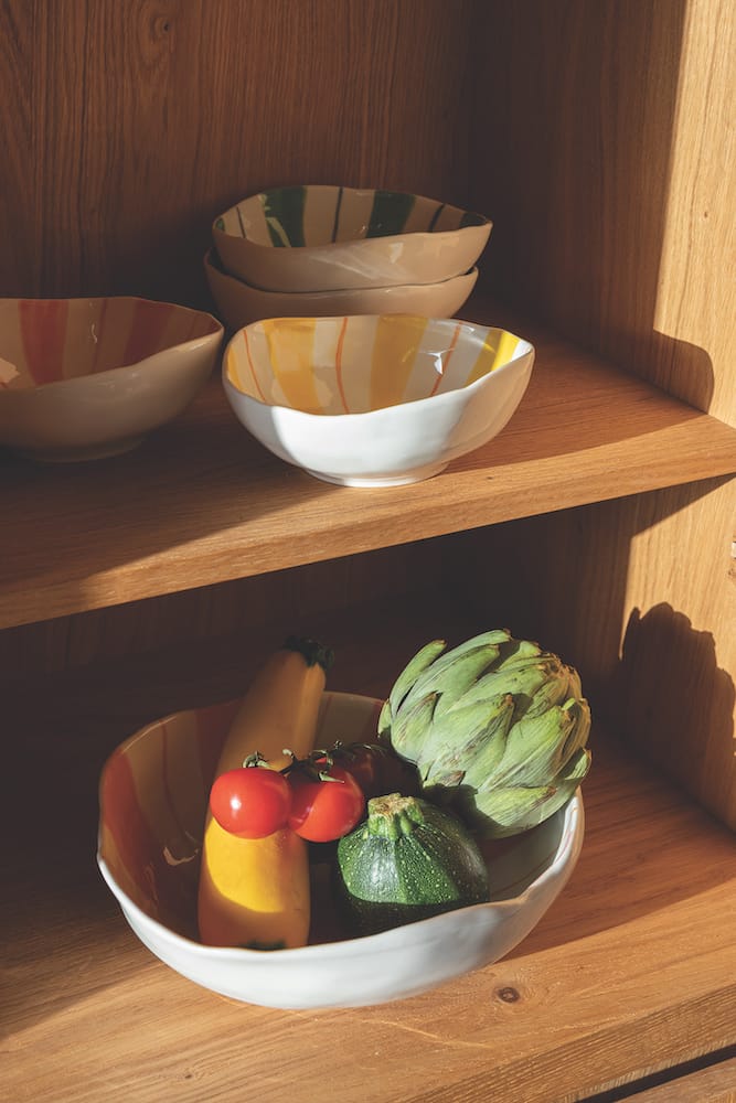 The cheerful colour combination and ornate pattern create an elegant and unique bowl. This bowl is ideal for serving salad or storing fruit and vegetables.