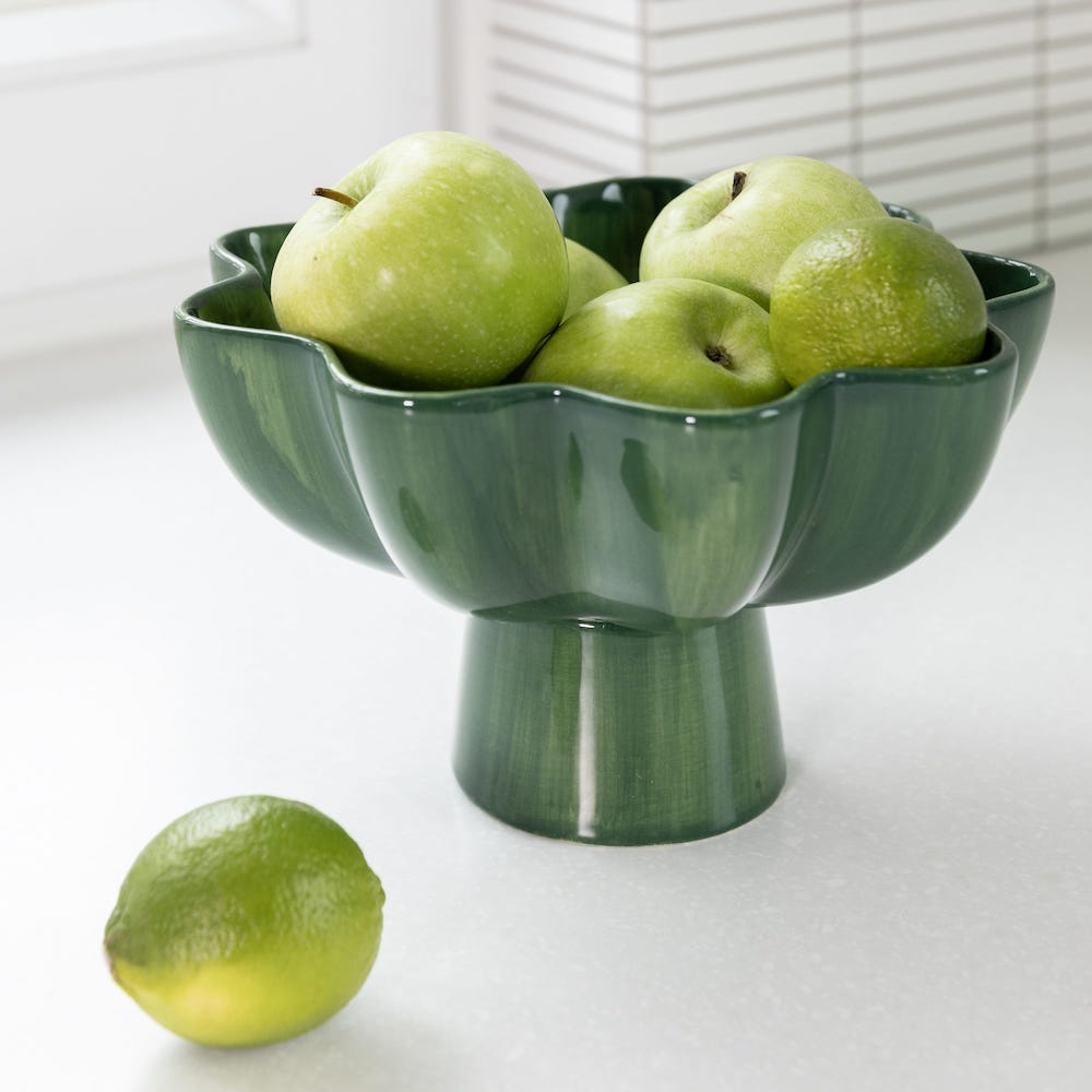 Display your healthy fruits or vegetables in this beautiful bowl. The bowl sun is defined by its stylish shape in combination with the bold green colour.