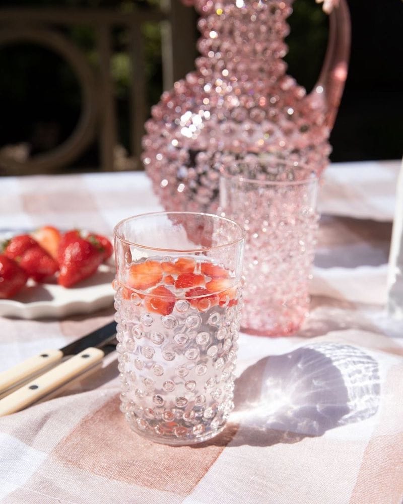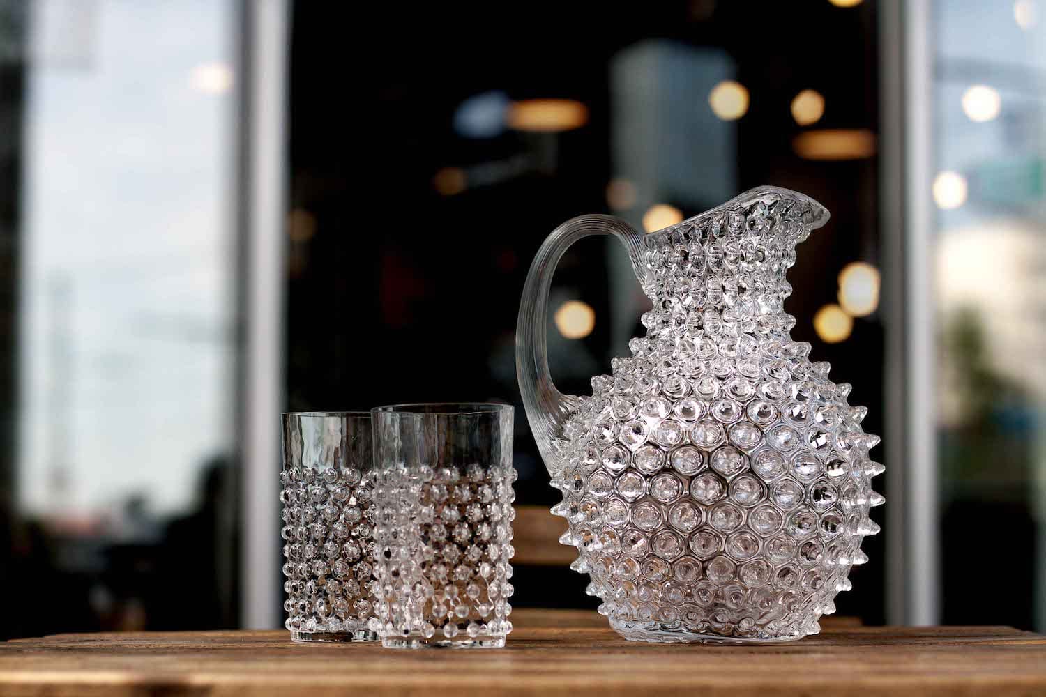 Be different from the crowd and take a unique twist on a timeless classic. A modern approach to the Bohemian glass tradition, our set of crystal tumblers, handcrafted, has an avant-garde, yet minimalist hobnail design. This is not only bound to bring a bit of charm to your dining experience but also serves a very practical purpose, as it is comfortable and reassuring to hold. The classic crystal colour variant is a statement piece of glassware sure to fit on any dining table.Each tumbler can hold up to 200ml, is handmade, lead-free and dishwasher safe. A matching crystal Hobnail Jug is available with these tumblers.