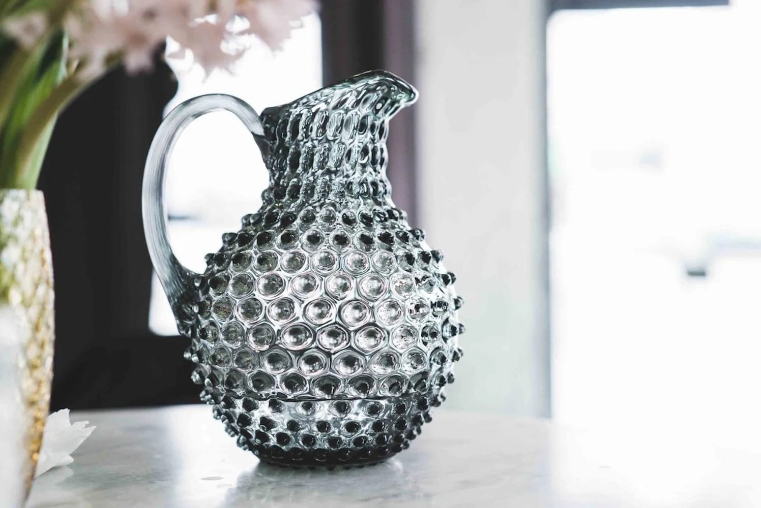 Grey smoke is one of the trendiest colour at the moment. It works great in contemporary interiors and will surely capture the attention of all your guests. Featuring a bulbous base and a unique texture, this pitcher will create a slick atmosphere at your dining table.The jug can hold up to 2 litres of the beverage. Premium features such as a tapered handle give you a comfortable hold on the jug; while the ice lip restrains wayward ice cubes.