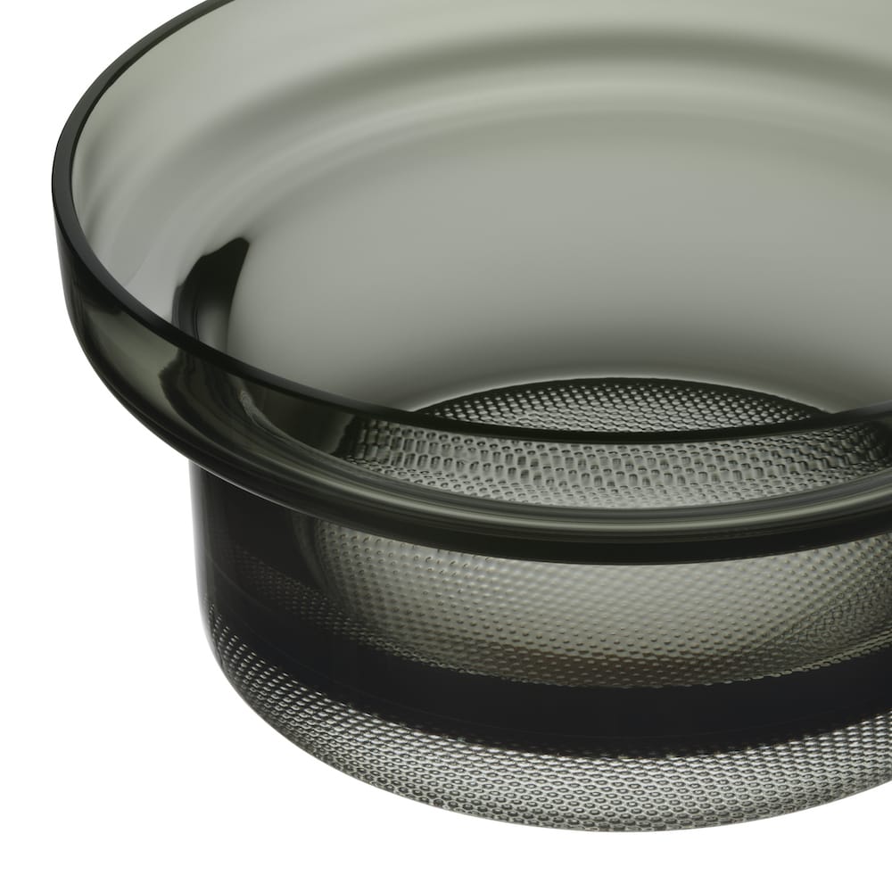 The Limelight series is characterized by a massive base, whose equally decorative and subtle patterning provides a light-diffusing effect that makes each piece outshine the other. The glass bowl is perfect for everything from desserts and snacks to fruits and salads.