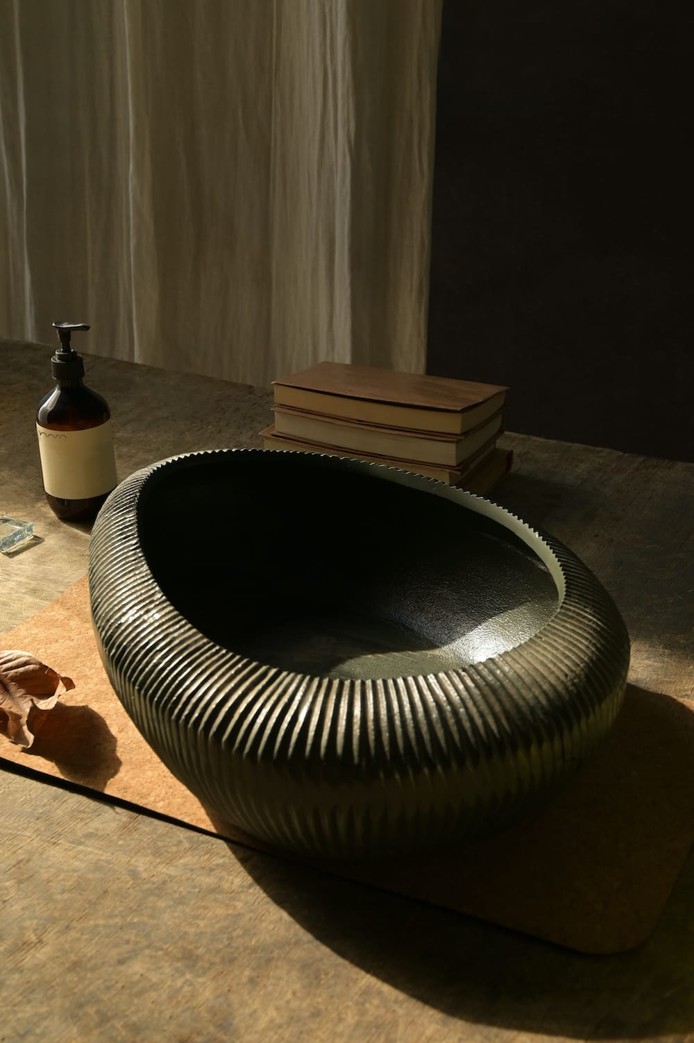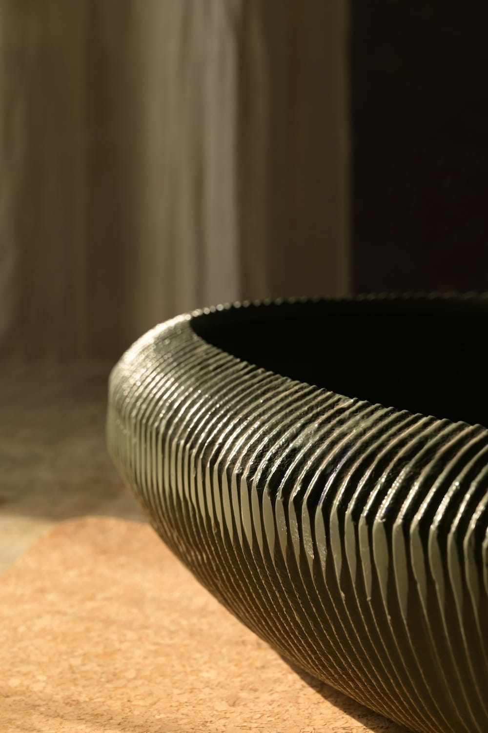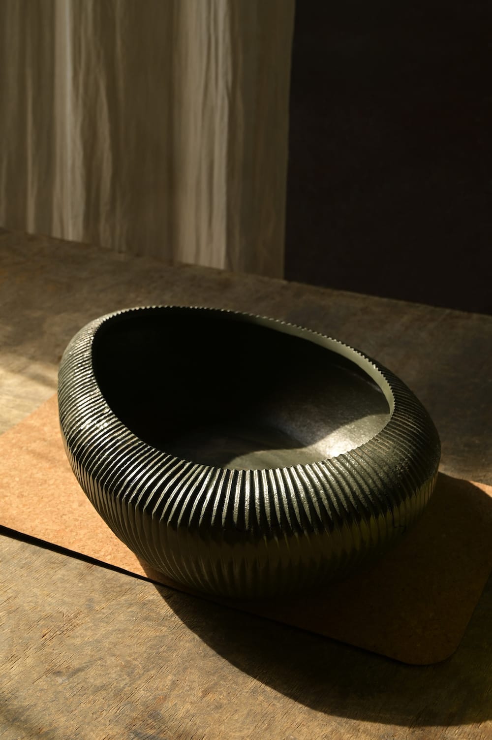 A bold, textured bowl with a deep charcoal finish. Perfect as a centerpiece on your dining table or to anchor a minimal shelf.