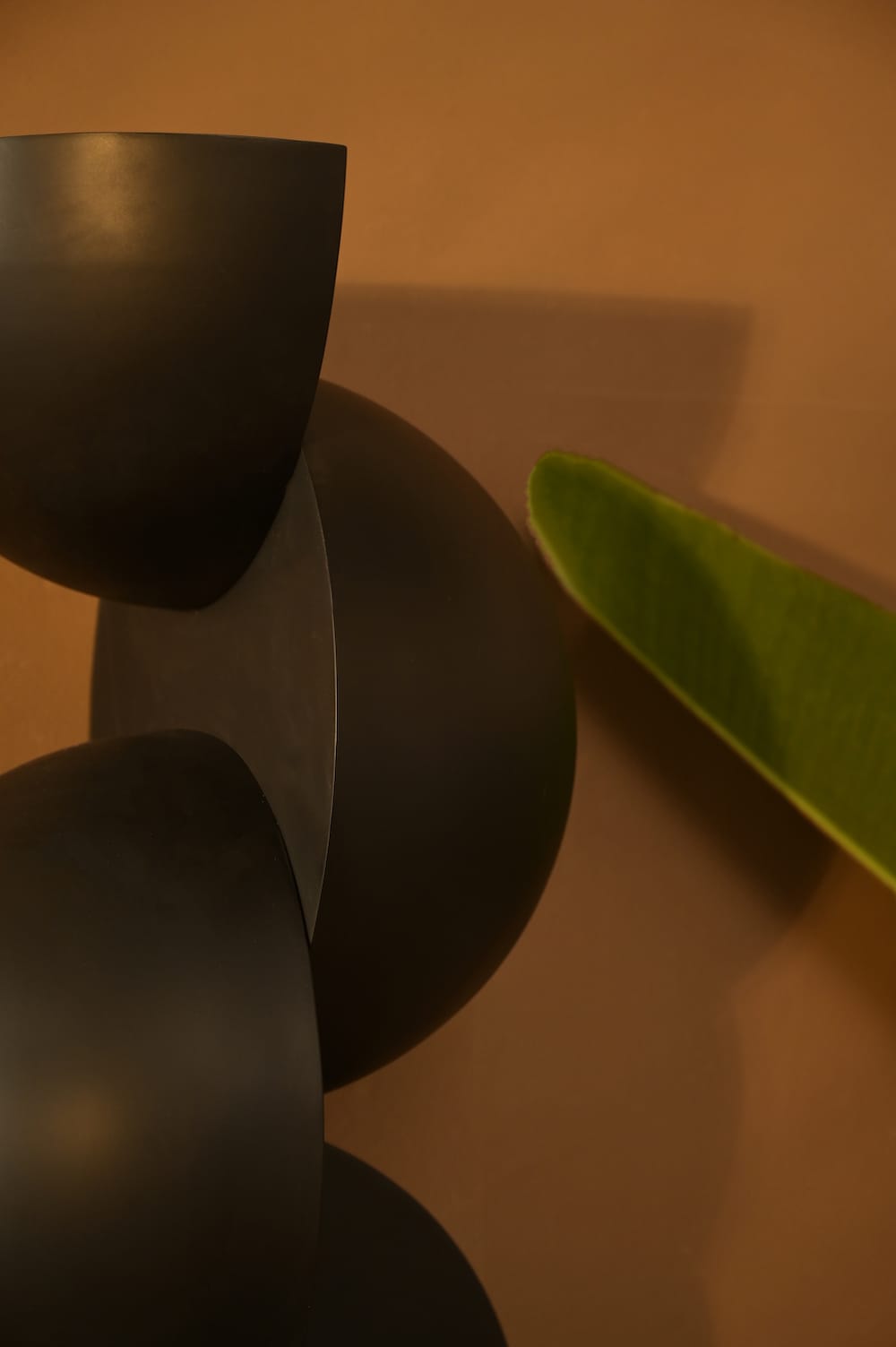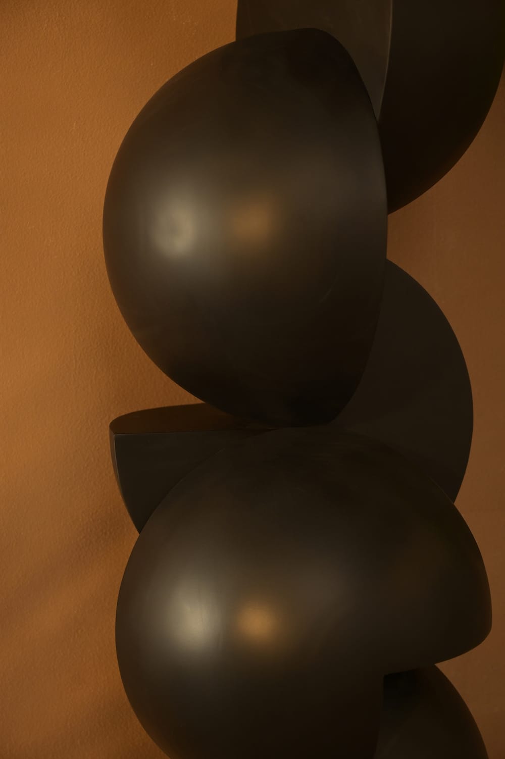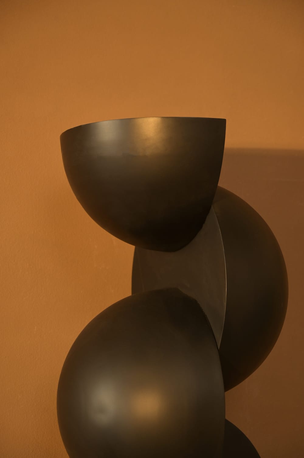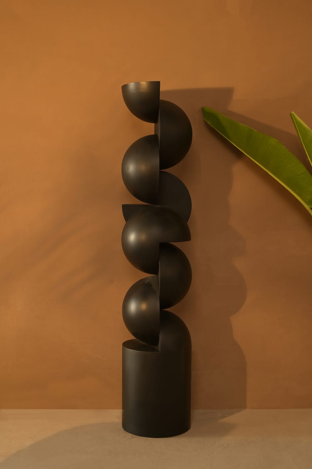 A towering sculpture of interlocking semi-spheres, the Oblio brings rhythm, balance, and drama. Best styled as a floor sculpture in living rooms, foyers, or gallery-like corners.