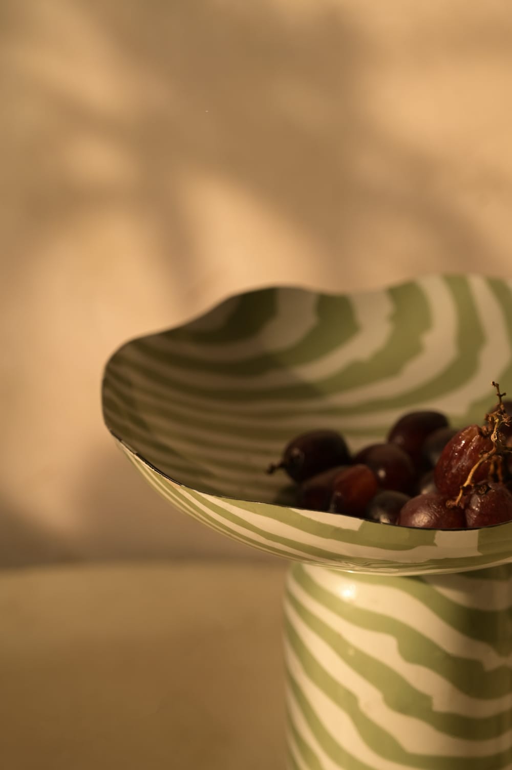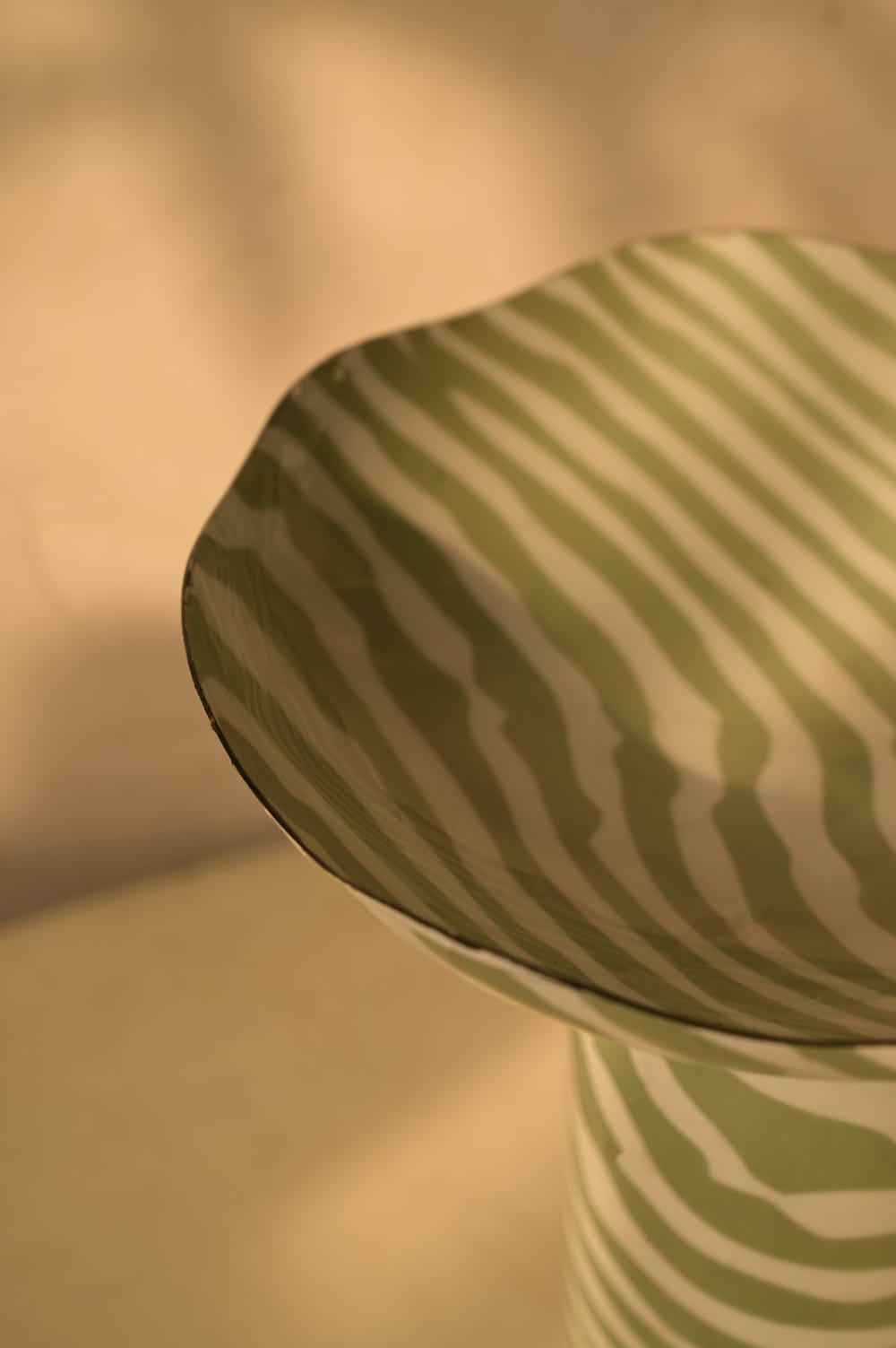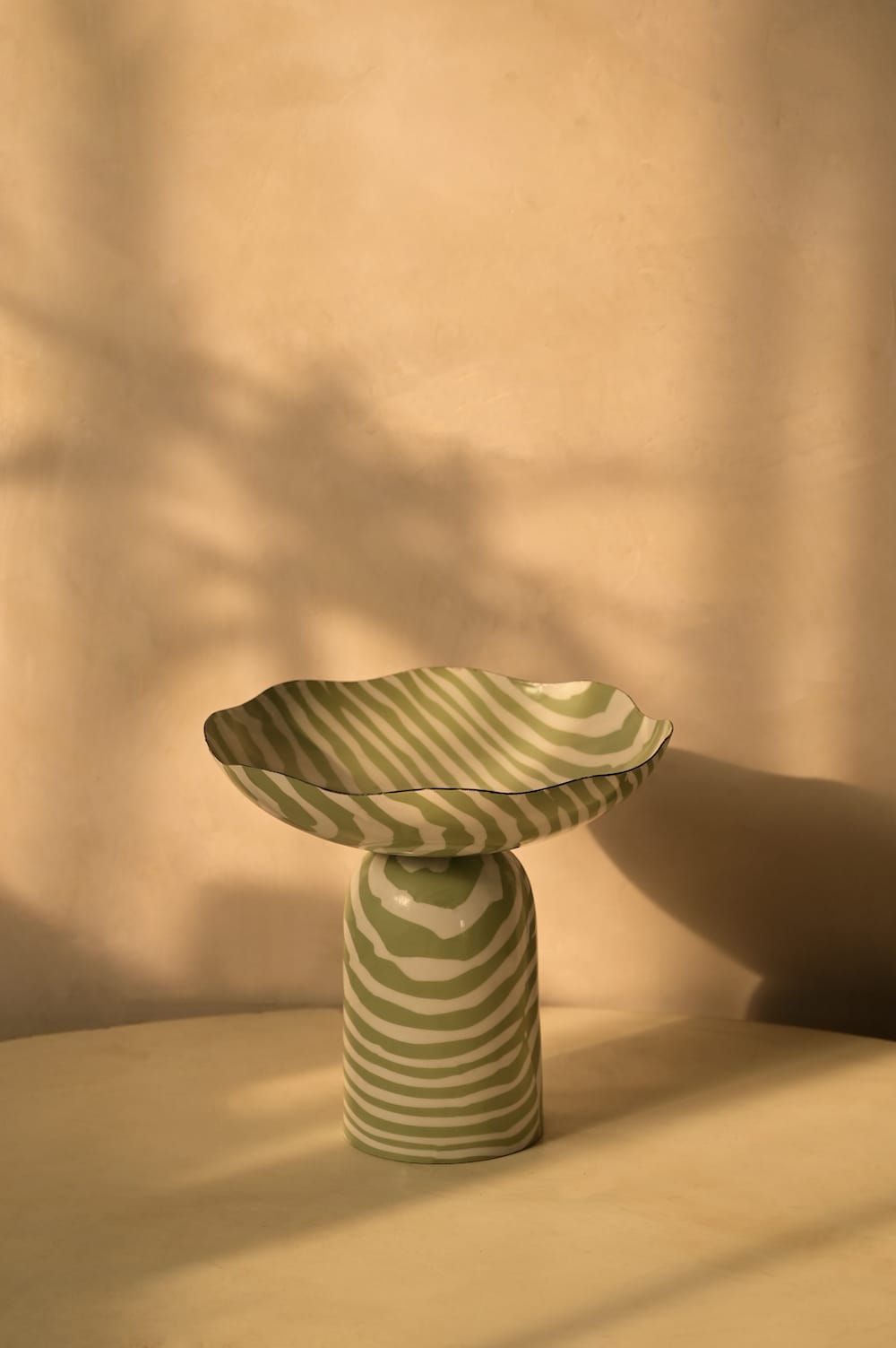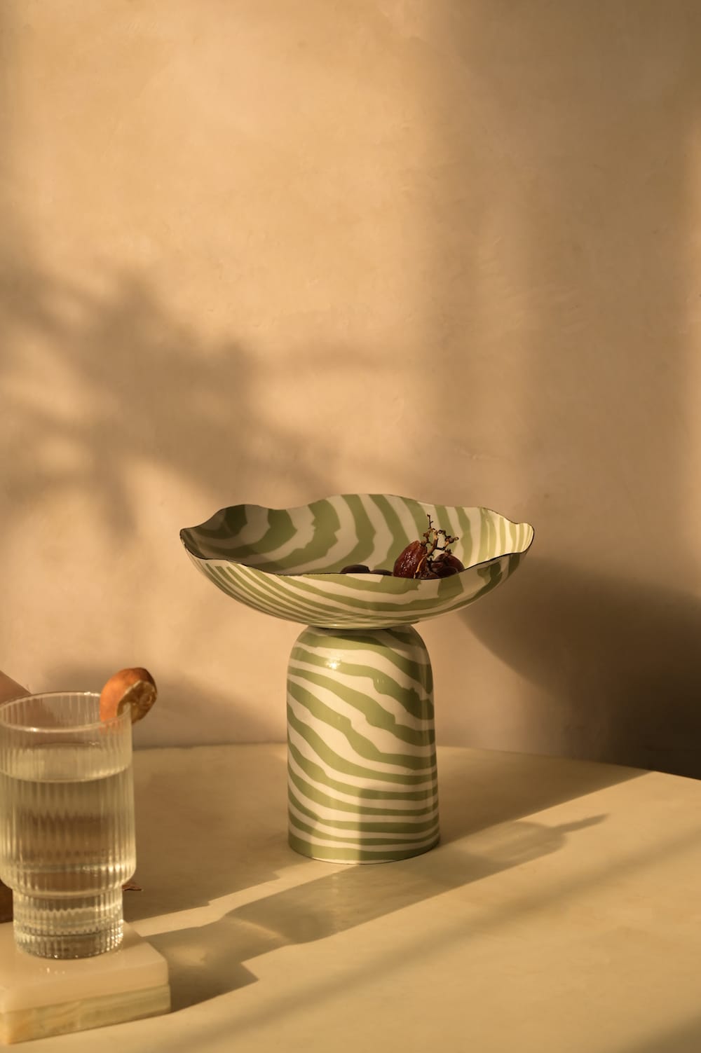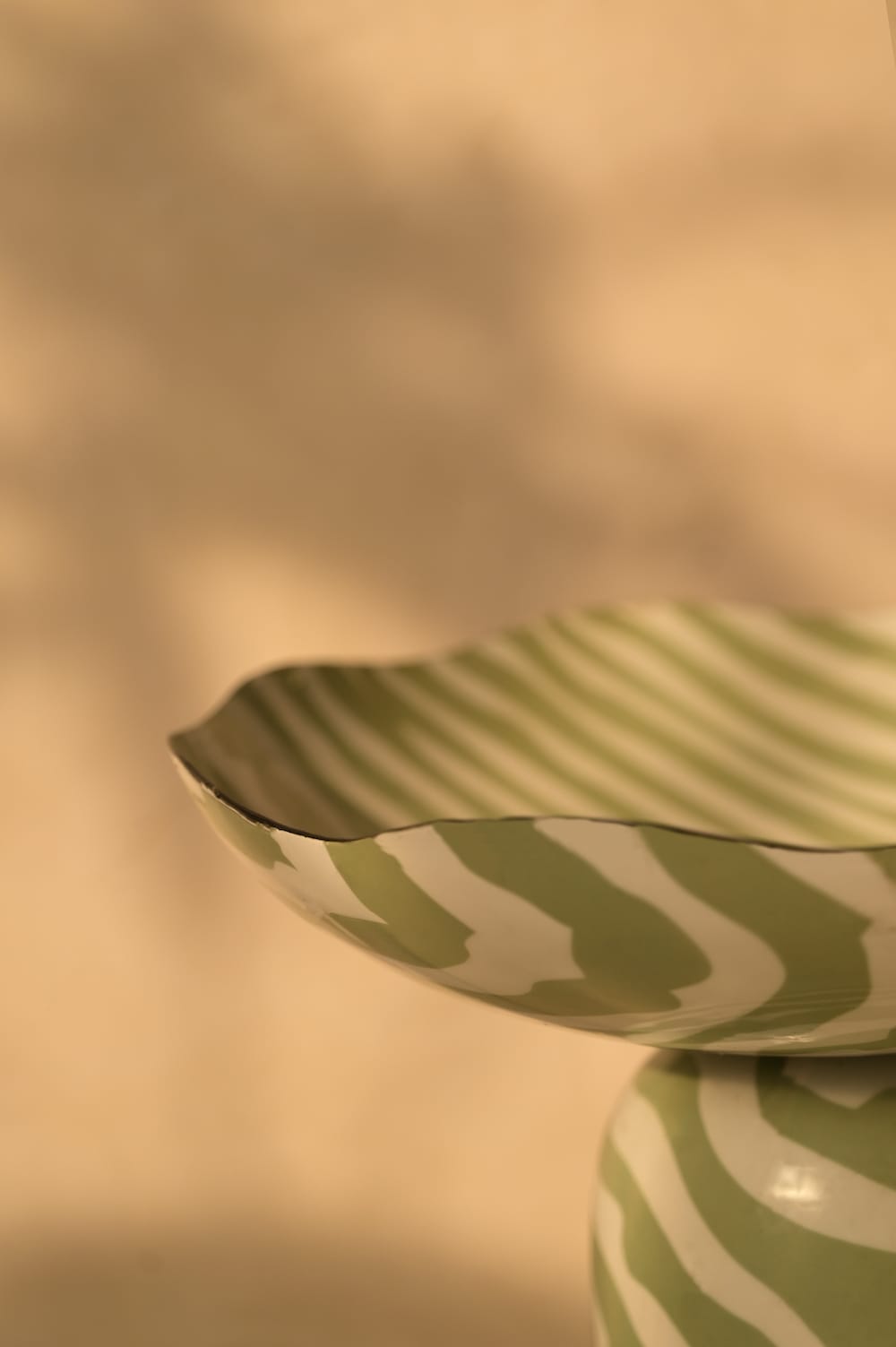 A playful statement bowl with soft curves and hand-painted stripes. Style it on a coffee table, console, or dining setup for a pop of personality.
