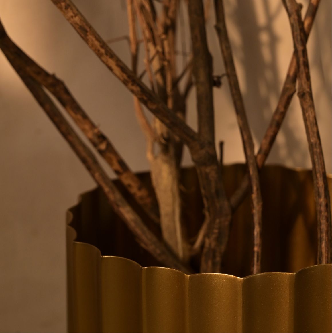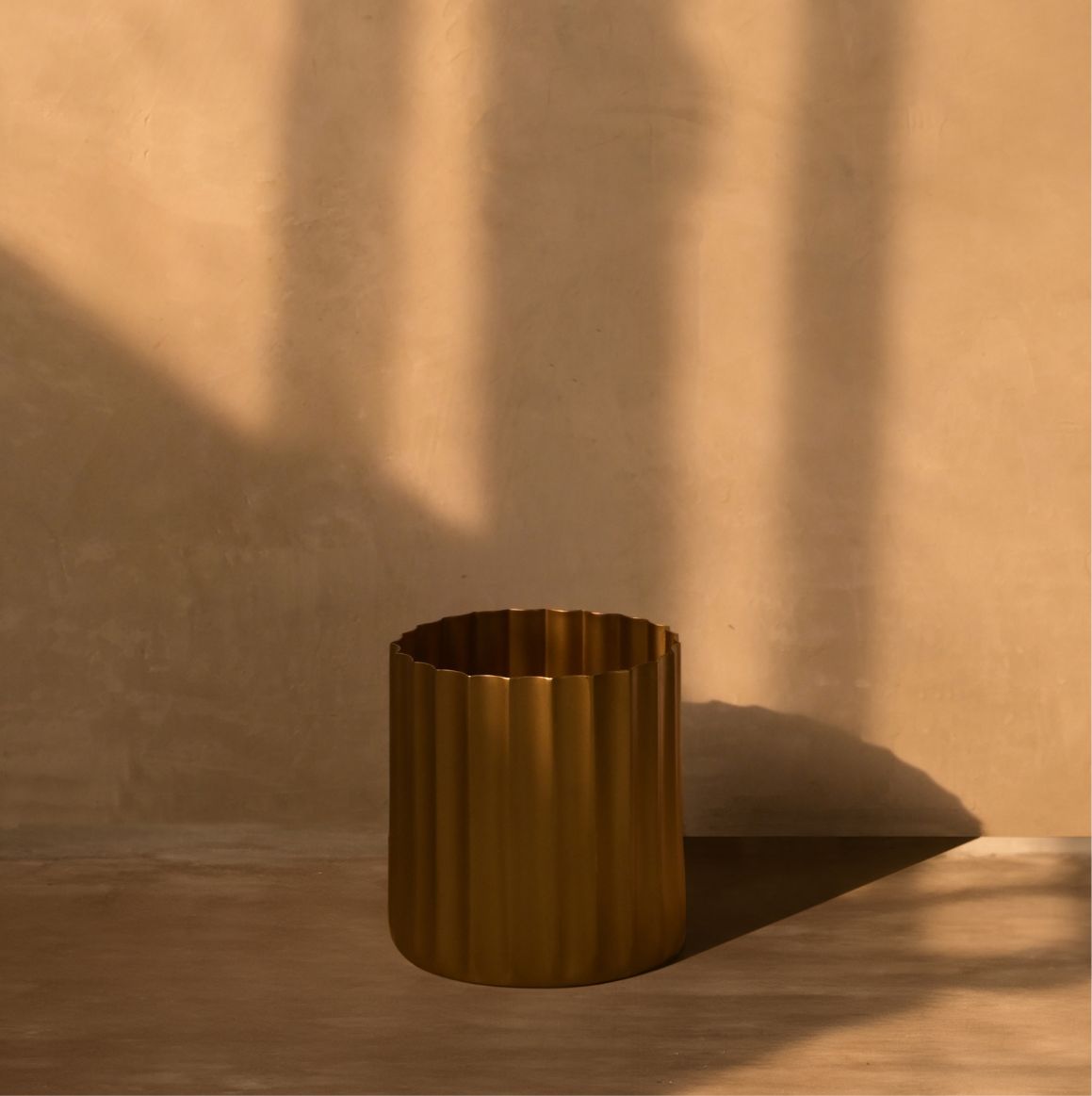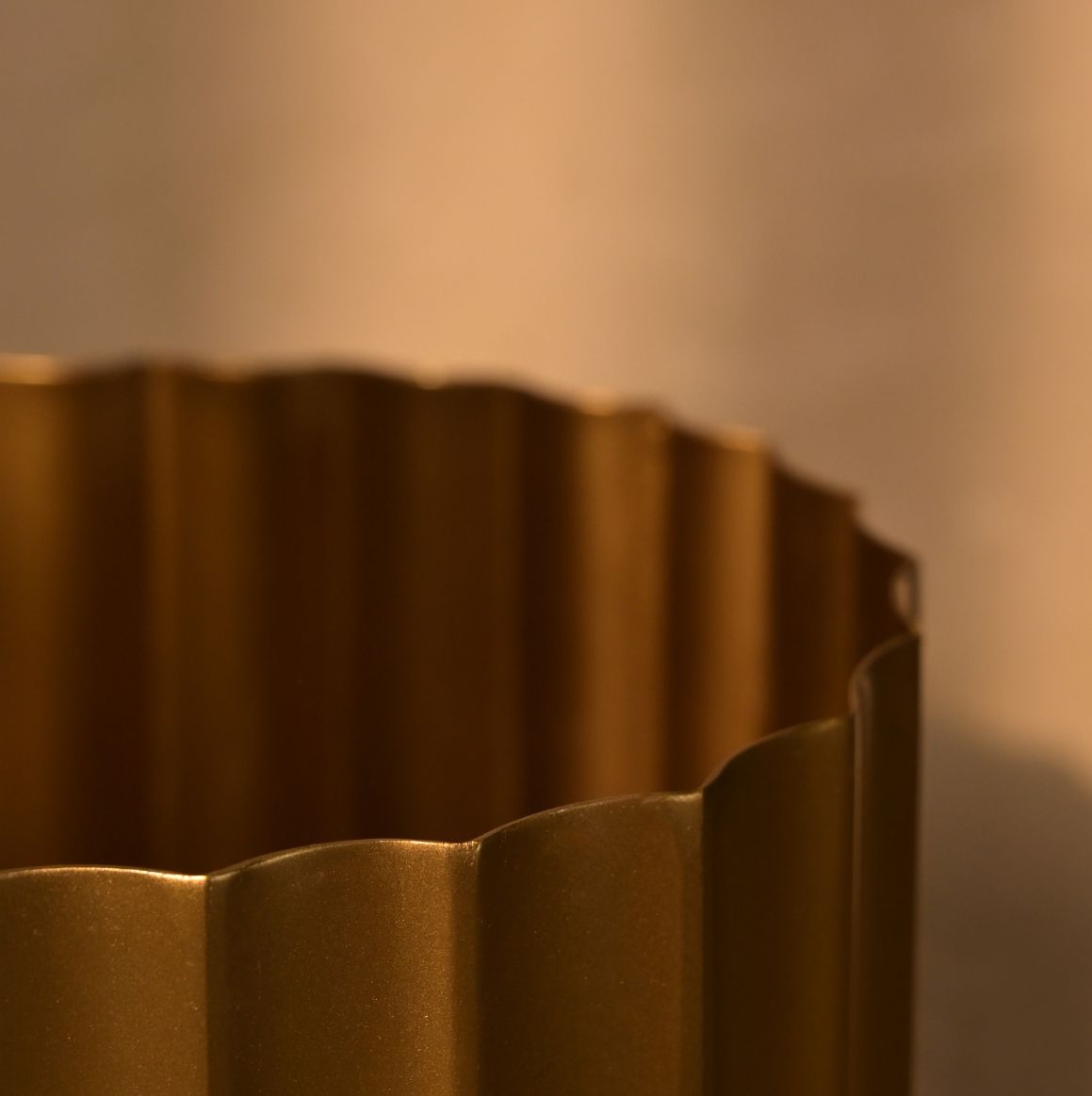With its rippled silhouette and warm golden finish, the Siena Vase brings quiet radiance to any room. Whether styled alone as a statement piece or filled with dried stems, it adds a subtle touch of luxury.