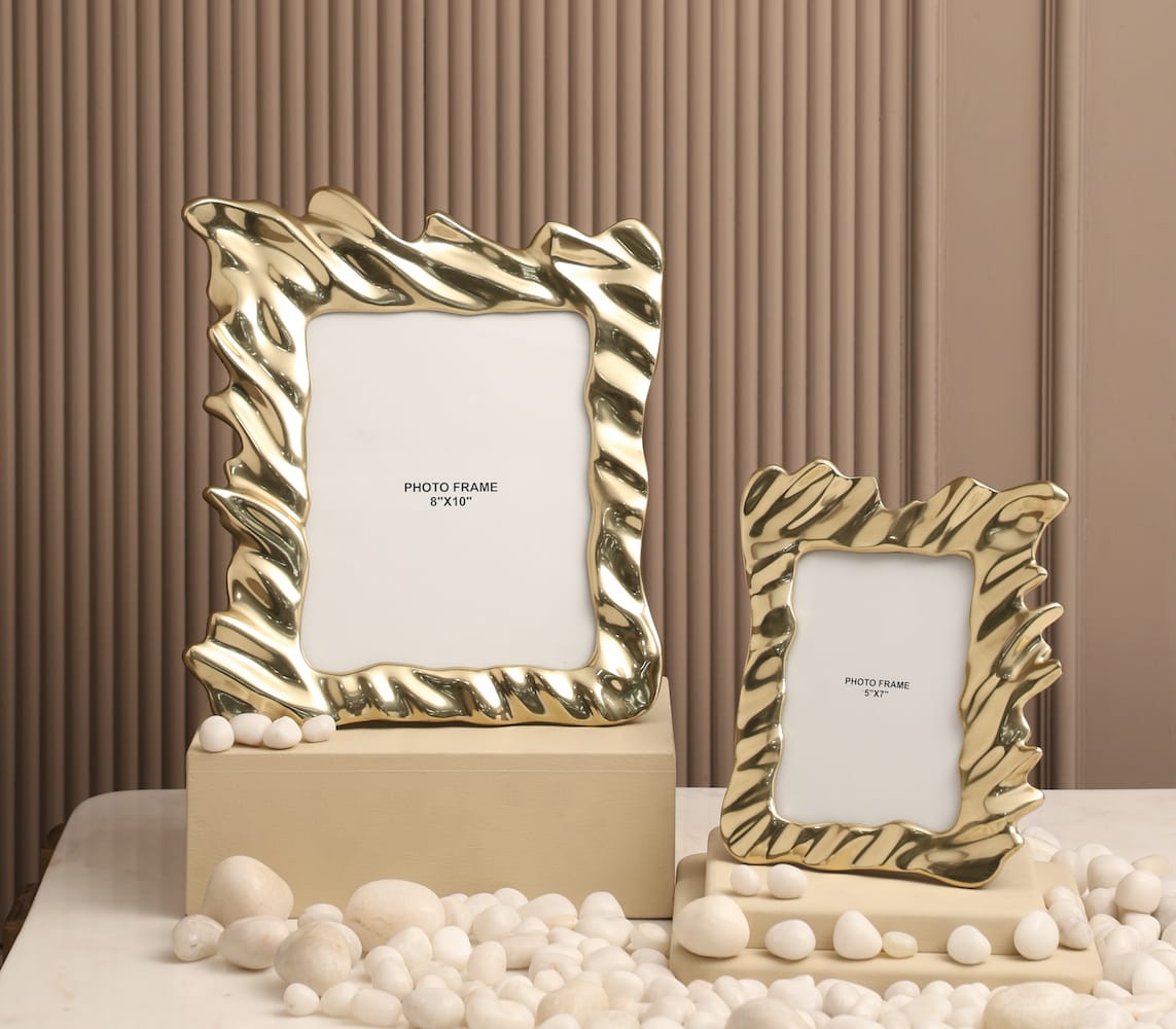 Crafted with a modern, international appeal, this photo frame features an edgy, unique design that elevates your cherished memories. Its refined metallic finish makes it a standout décor piece, perfect for adding contemporary elegance to any modern home.